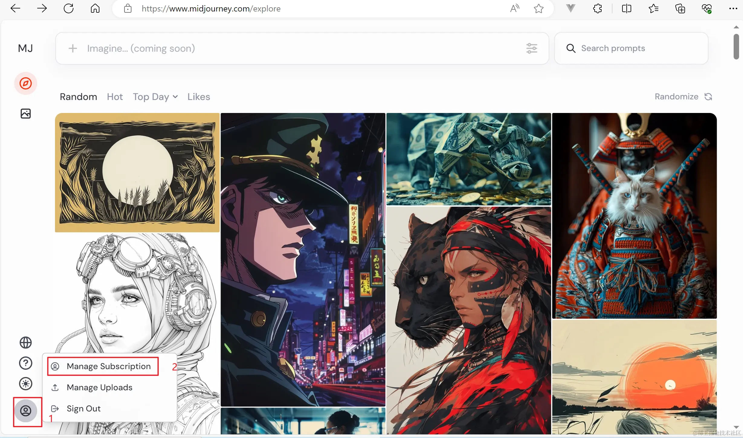 在这个虚拟聚会场所中,有一个特别引人注目的角落,那就是MidJourney(MJ)。MJ就像是这场聚会的一位神奇画师,专门负责将我们的文字描述变成生动形象的图像。要进入MJ的画室,首先,我们需要在这个聚会场所注册一个账号,这就相当于获得了进入画室的通行证。