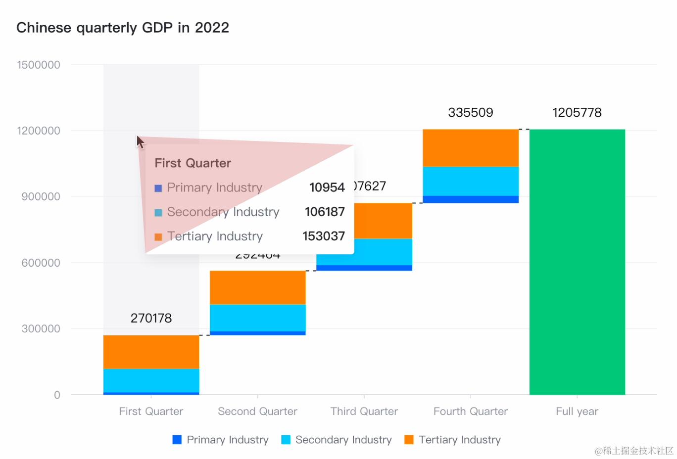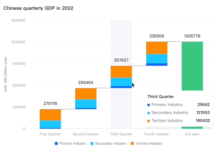 通过使用 VChart,你既可以显示图表中任何系列的图元所携带的数据信息(mark tooltip):