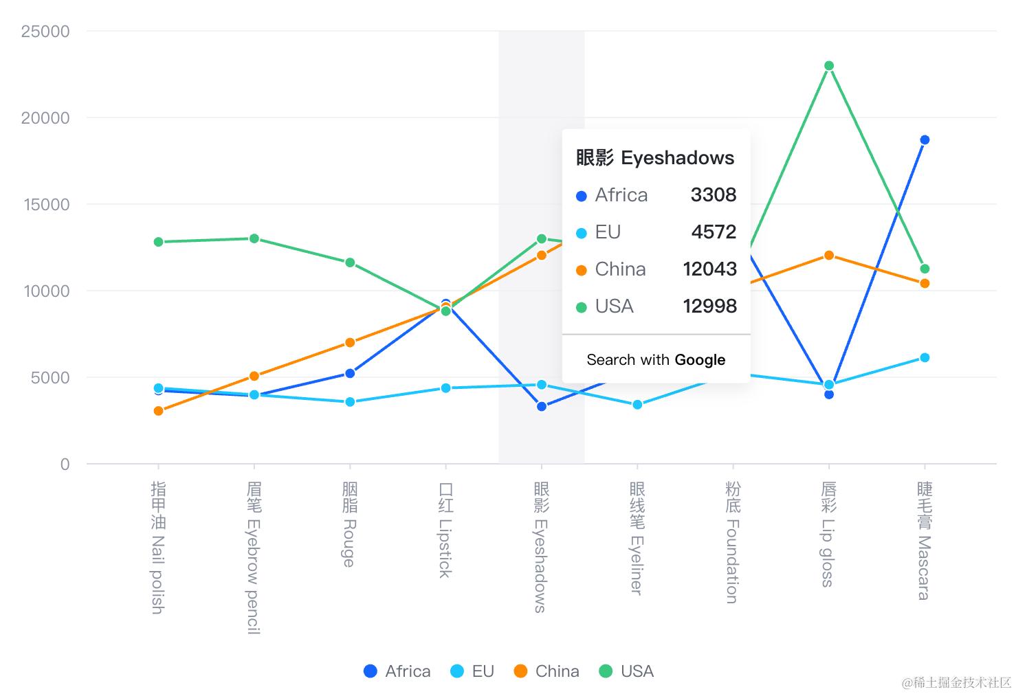 { type: 'Nail polish', country: 'Africa', value: 4229 },