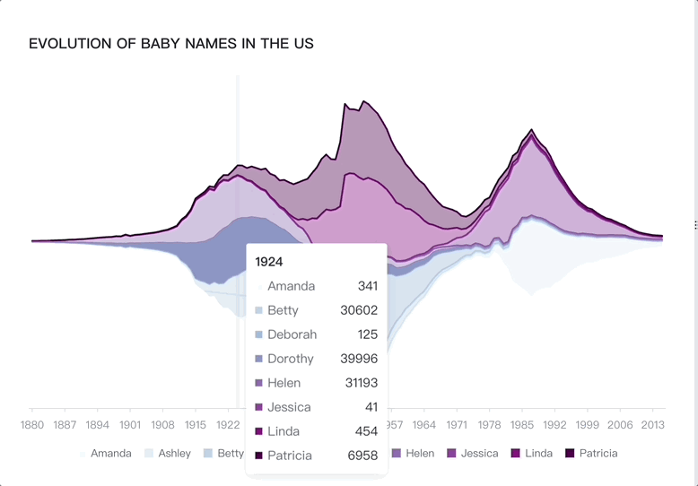 提示信息(tooltip)是一种常见的 GUI 元素。在可视化领域,tooltip 通常指用户将鼠标悬停在图元上或者图表区域时弹出的明细数据信息框。如果是桌面环境,通常会在用户将指针悬停在元素上而不单击它时显示 tooltip;如果是移动环境,通常会在长按(即点击并按住)元素时显示 tooltip。