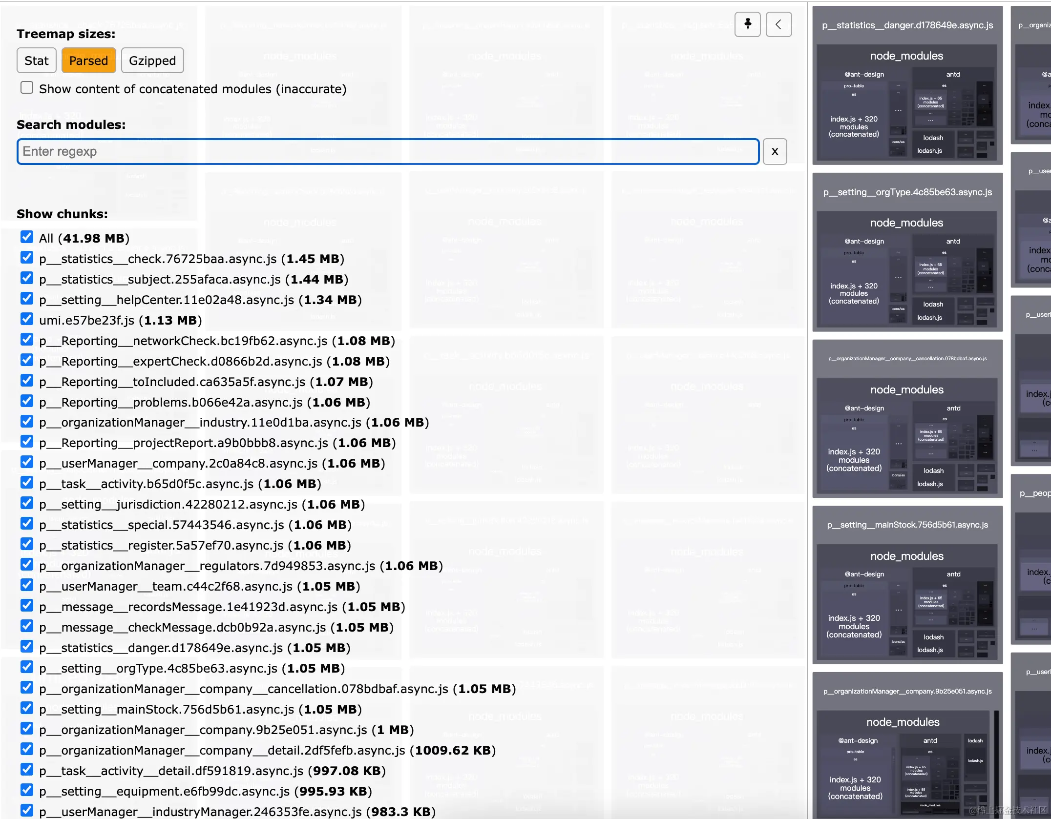 原始: parsed JS 体积 42M.