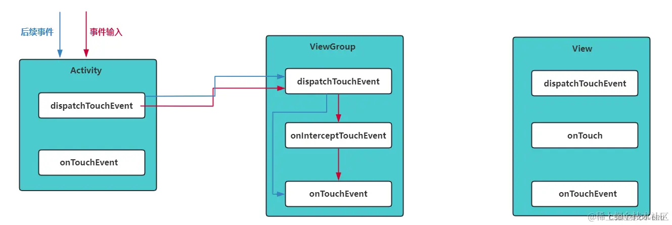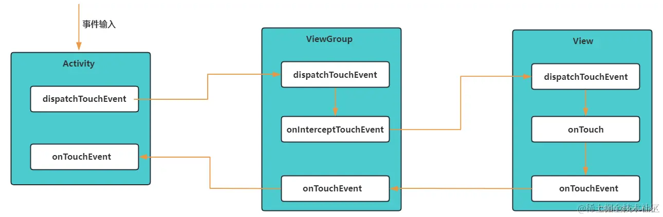 图三中Activity有两个回调方法可以拿到这个事件,dispatchTouchEvent 和 onTouchEvent;