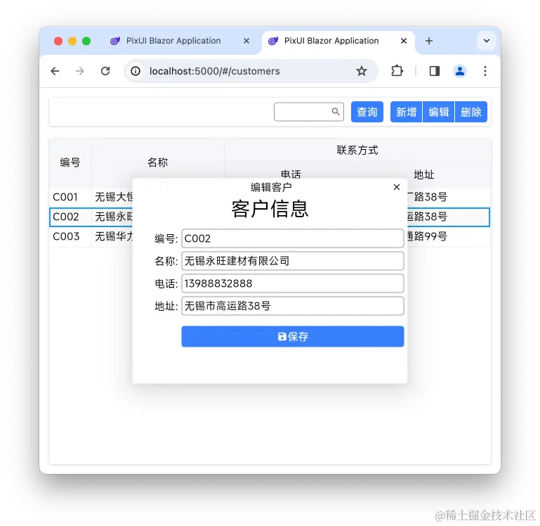这样我们就可以在浏览器地址栏直接输入localhost:5000/#/customers访问客户列表视图,如下图所示: