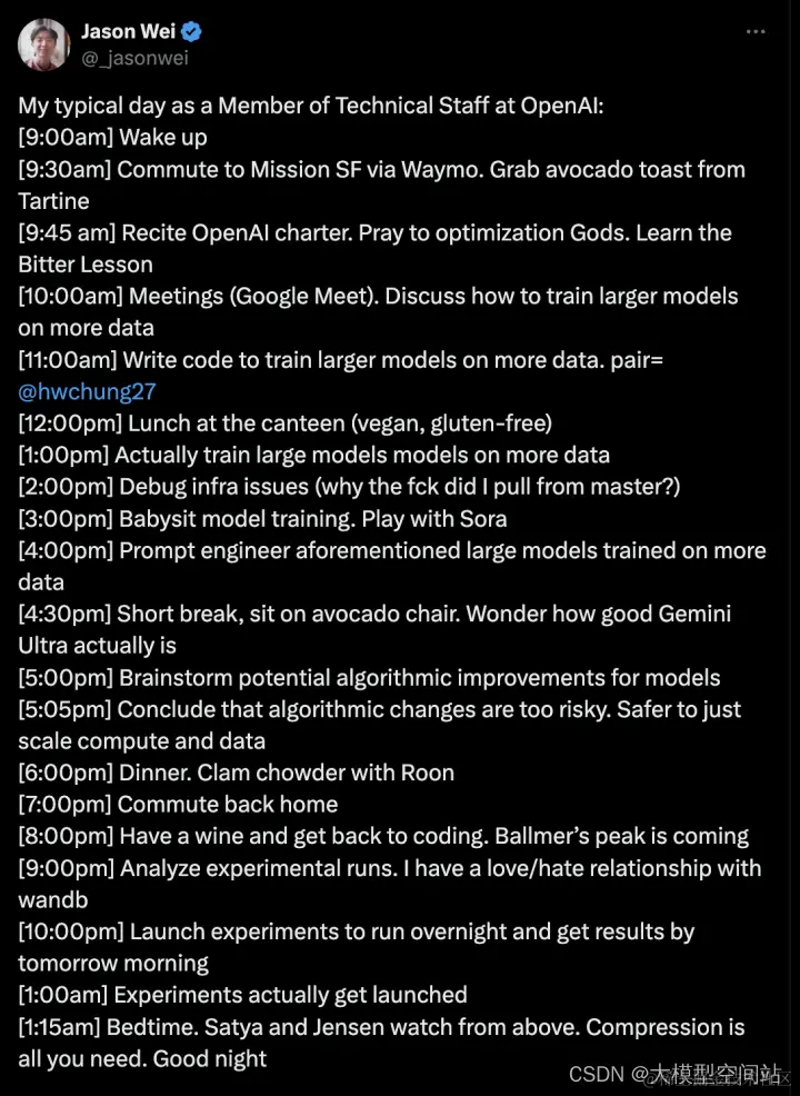 Jason Wei分享:作为OpenAI的技术员工,一个典型的工作日都做了什么