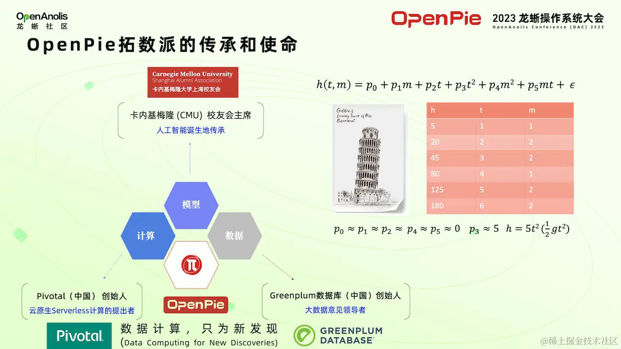 下面介绍 πDataCS。数据分析的目的最终是为了发现解释世界规则的模型。有了数据和计算,最终用来描述世界规律,构建一个模型系统。构建模型系统的关键是要有足够多的数据,数据是核心竞争力。有了数据后要构造出解释世界的模型。拓数派团队既具备大数据分析的丰富经验,也具备云计算方面的实战经验。