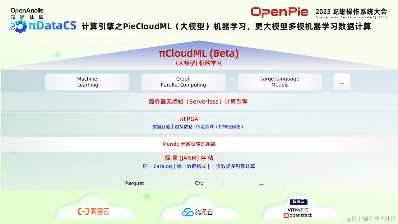 第三款计算引擎是正在开发的新一代(大模型)机器学习 PieCloudML,在现有这些架构的基础上,通过新一代 PieCloudML,增加机器学习、图像数据处理等大模型系统提供更深一步的支持。