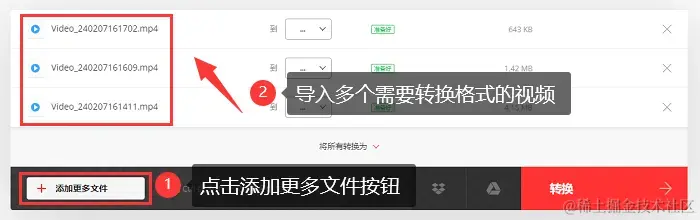 第2步:点击 【添加更多文件】 ,可以一次性上传多个需要转换的视频文件。