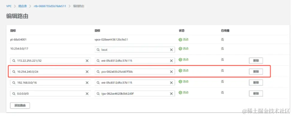 vi. 将Atlas VPC 的 CIDR 块添加到目标列。