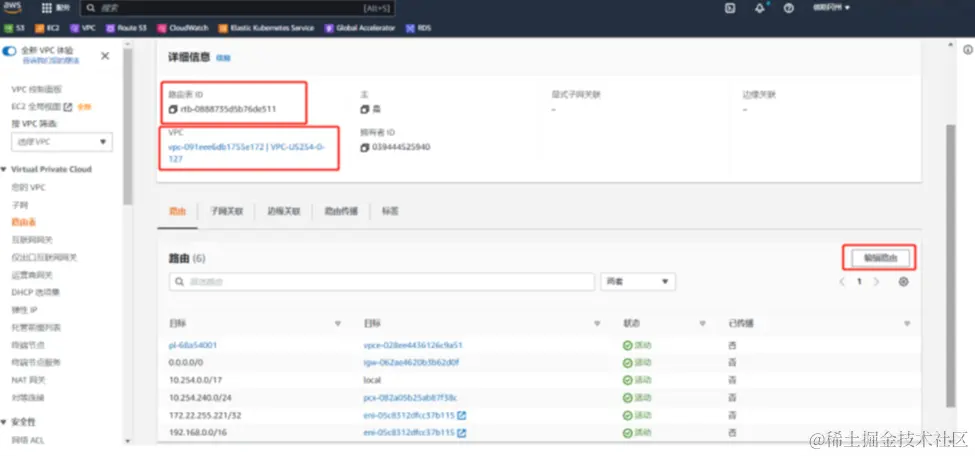在 AWS 中,启用 DNS hostnanes (主机名)和 DNS resolution (解析)。