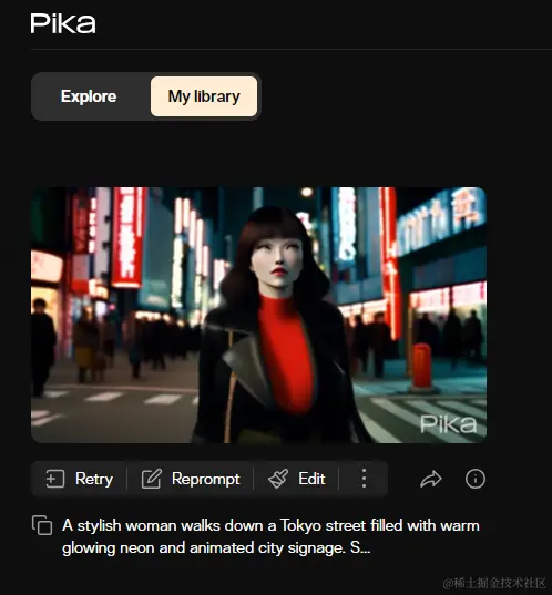 单说这是很大突破,可能你会没有啥感觉,我们将现有的文本生成视频网站Pika,使用同样的提示词放入进行生成对比。