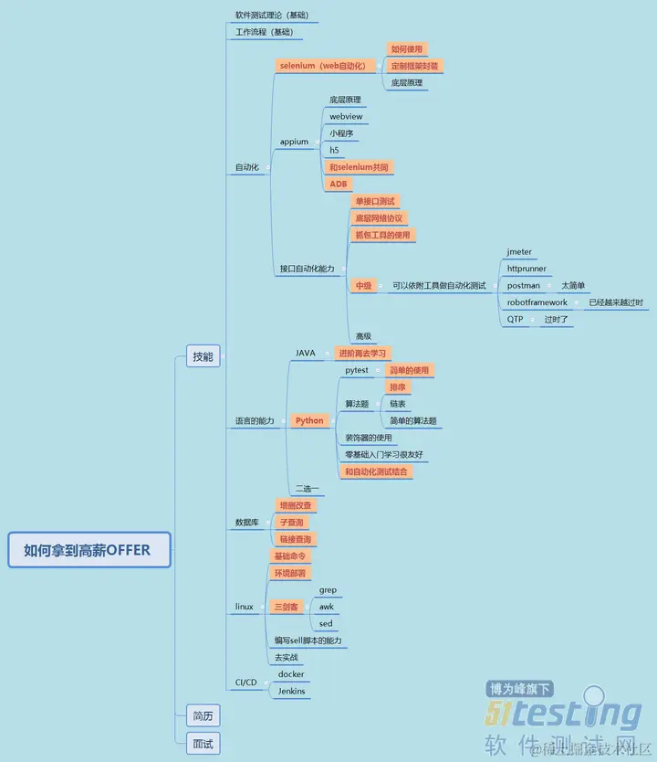 · 技能:底层原理(计算机网络、linux底层原理)、语言原理(算法、语言的一些机制)、数据库、selenium、