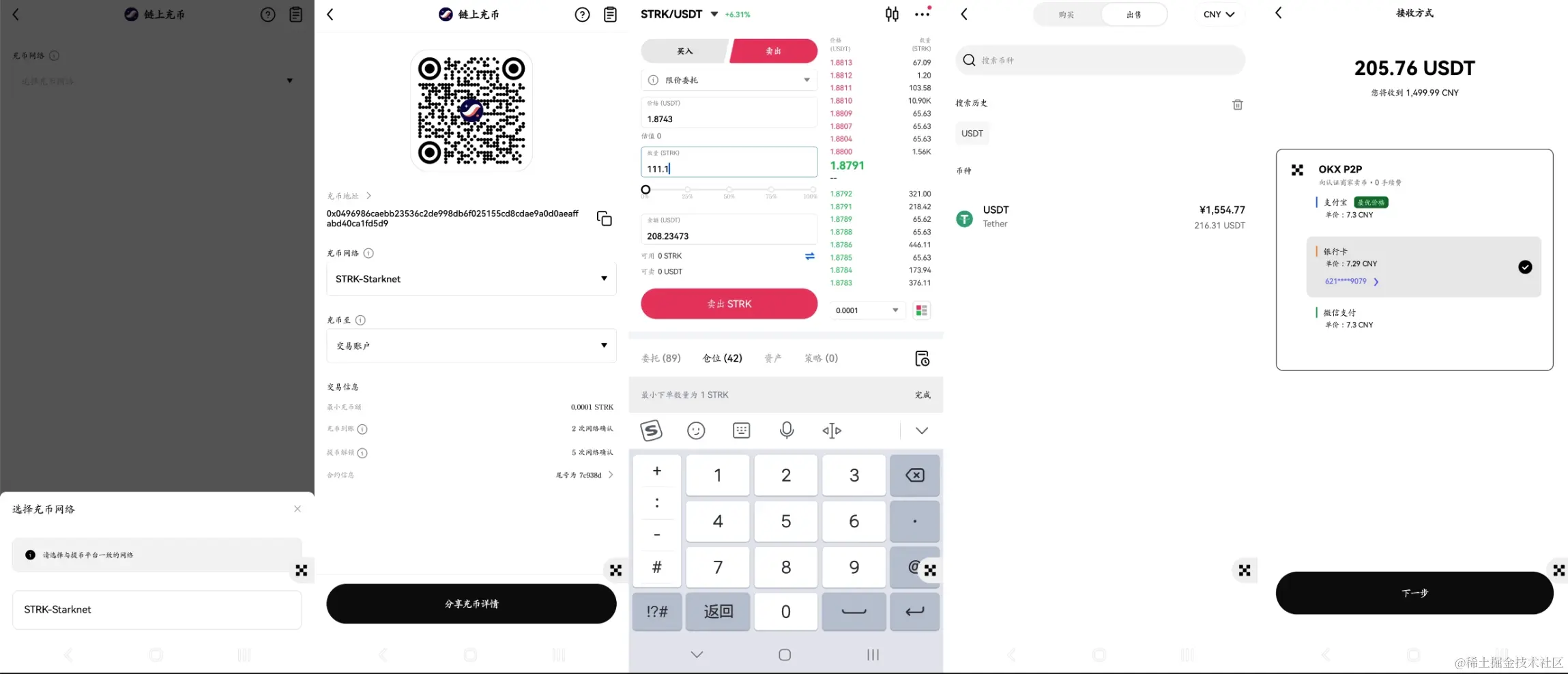 - 点击okx APP中的“交易”,找到STRK/USDT交易对,卖出,获得$USDT。
