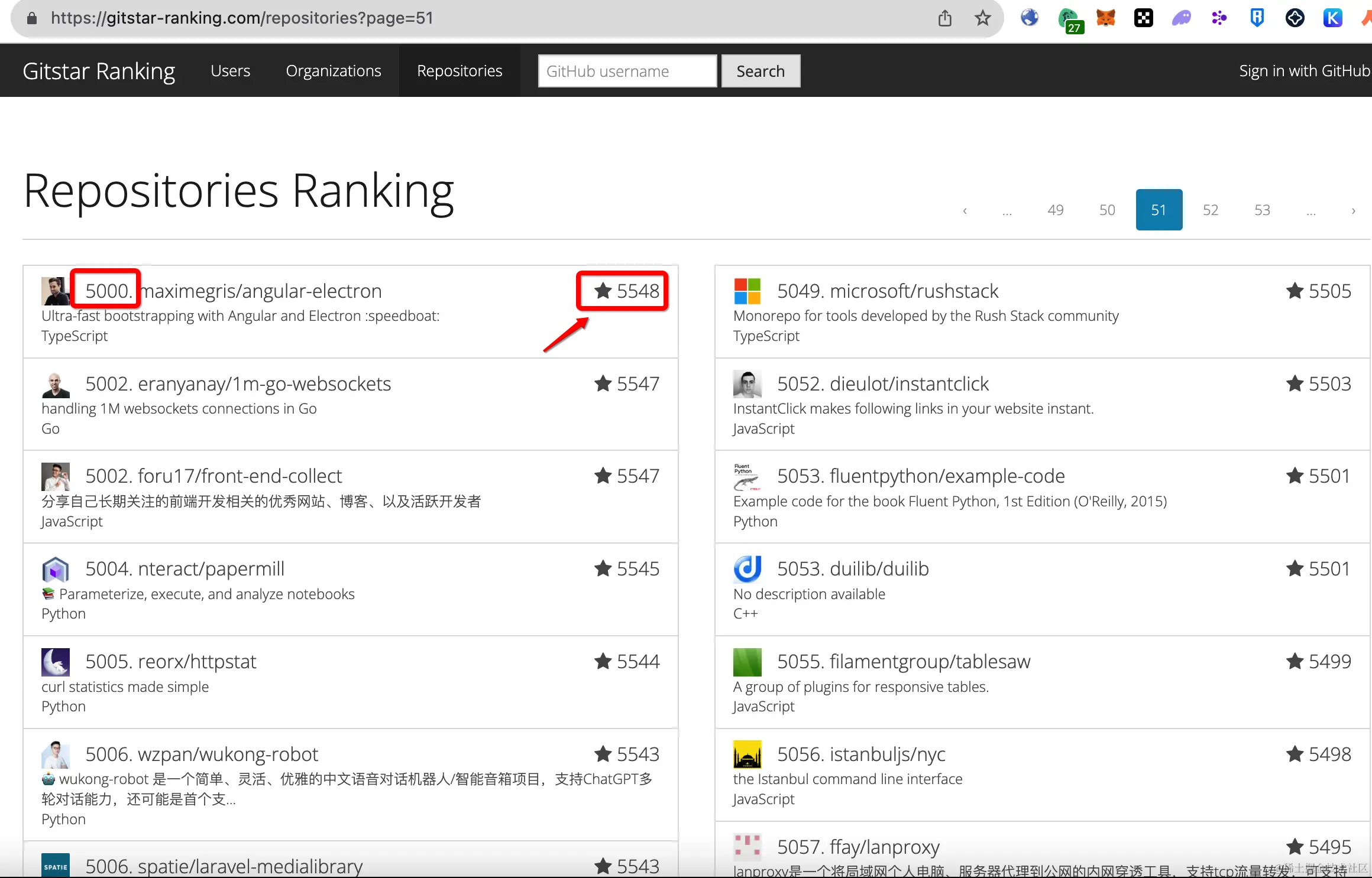 这里可以查看现在的github repo排名的地址: gitstar-ranking.com/repositorie… ,做个参考,以2023-11-15快照为准。