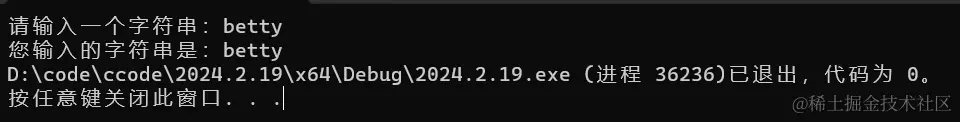 - 第一次输入gets全部读取,第二次输入printf遇见空格就停止读取。