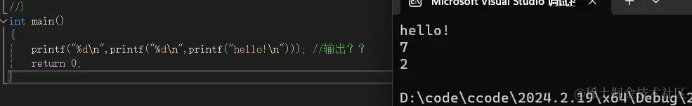 printf("%d\n",printf("%d\n",printf("hello!\n"))); //输出??