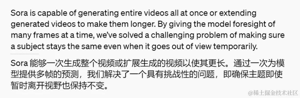 Sora是一种扩散模型,它能够通过从一开始看似静态噪声的视频出发,经过多步骤的噪声去除过程,逐渐生成视频。通过让模型能够预见多帧内容,团队成功克服了确保视频中的主体即便暂时消失也能保持一致性的难题。