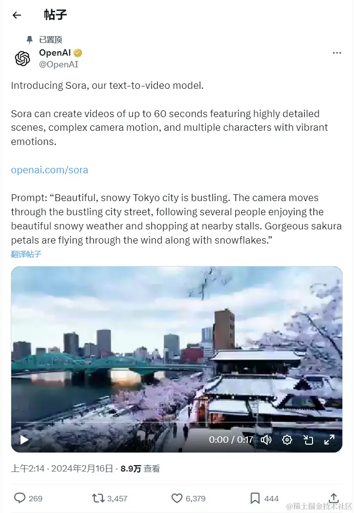 OpenAI没有发布GPT-5,反而进军了新的领域:文生视频。OpenAI新发布的文生视频模型Sora