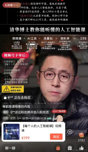 某个清华(美院)博士的卖课博主,他主打一门 199 元的 AI 入门课, 据说这门 AI 课他一年售出 25 万套,销售额将近 5000 万。