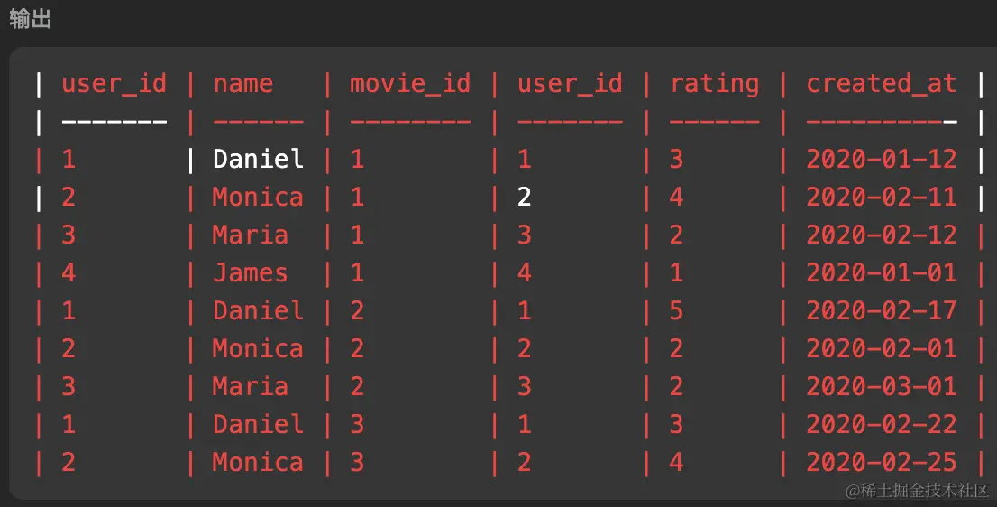 -- 使用 union all,避免用户名和电影名一样导致结果被合并