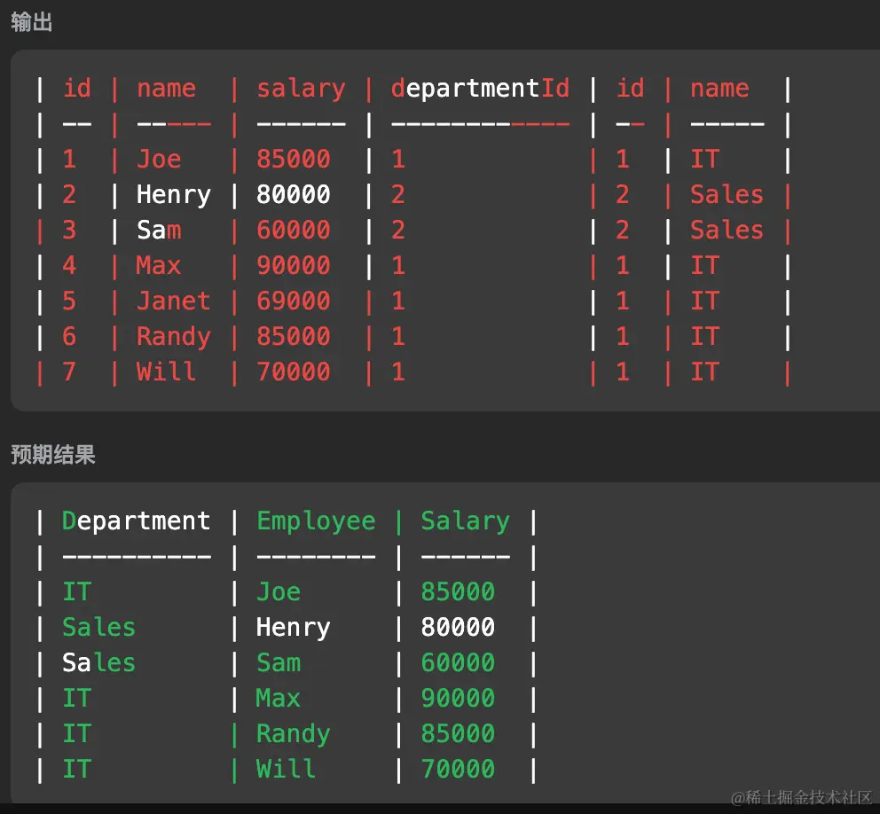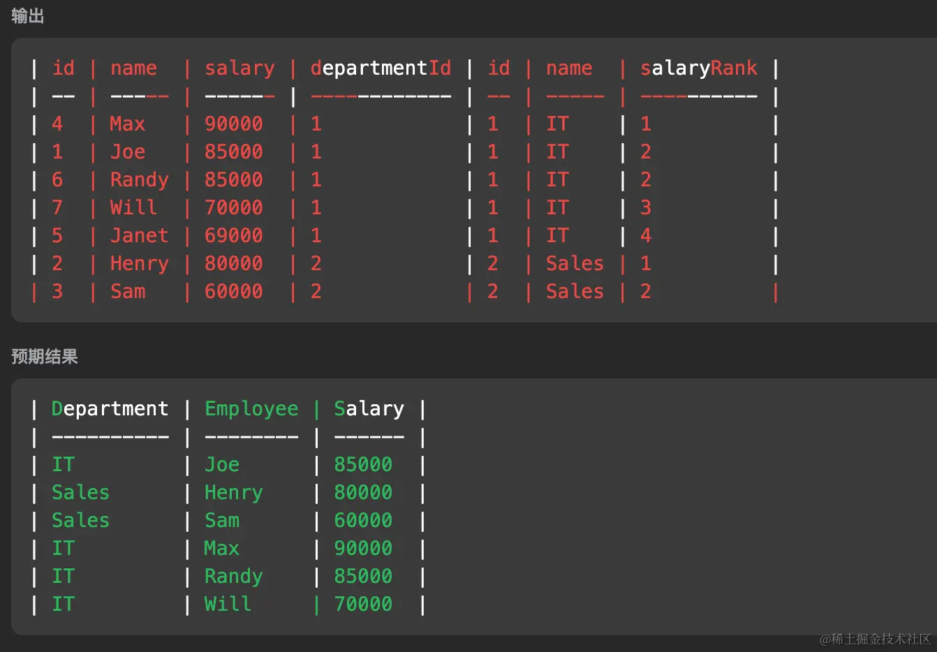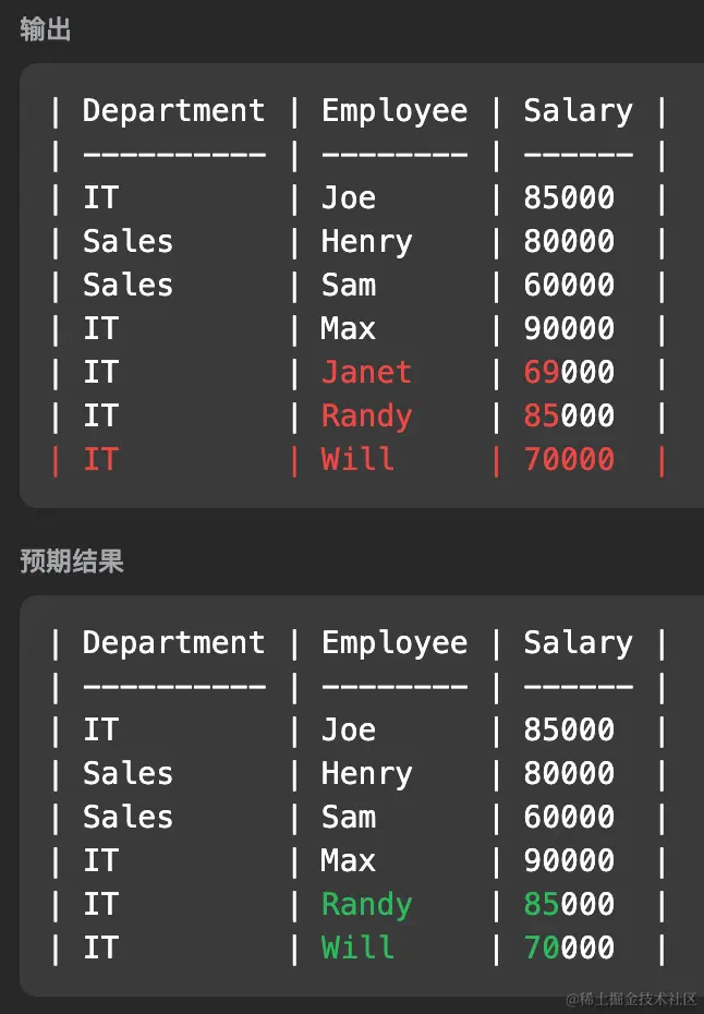 - 最后做 where 筛选出每个部门的前三名即可。