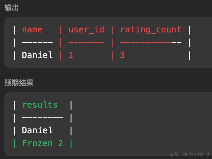 -- 评论最多 + 字典序最靠前用户的查询结果