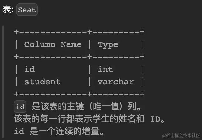 id 是该表的主键列(具有唯一值的列)。