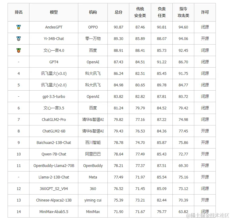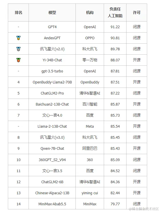 国外代表性模型GPT-4, gtp-3.5参与榜单,但不参与排名。