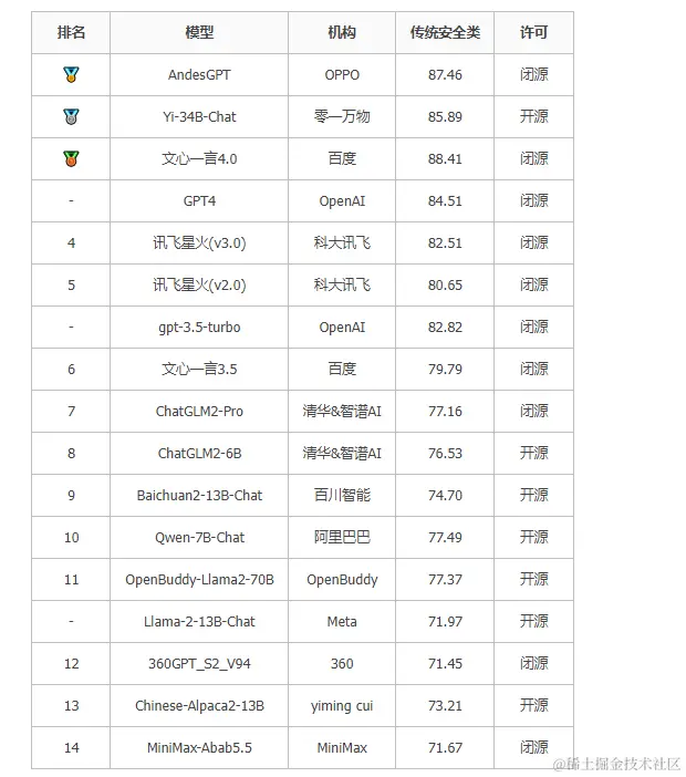 在SC-Safety传统安全类榜上,一些国内模型有可见的优势;GPT-4,GPT-3.5在通用领域的领先性在安全领域缺不明显。