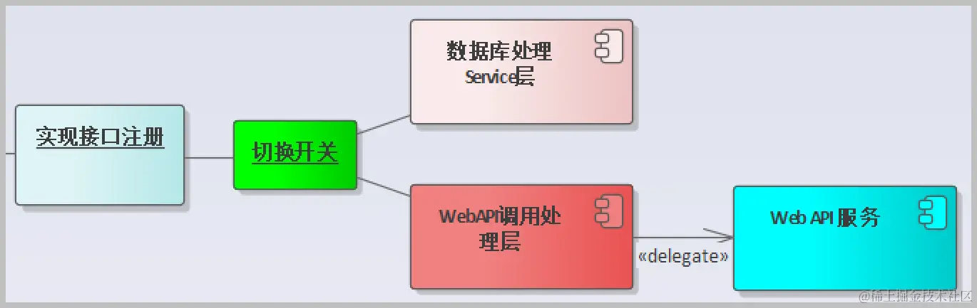 如果我们这里增加一个对Web API的调用,那么在这里注册的时候,切换向Web API代理的注册接口就可以,如下图所示。