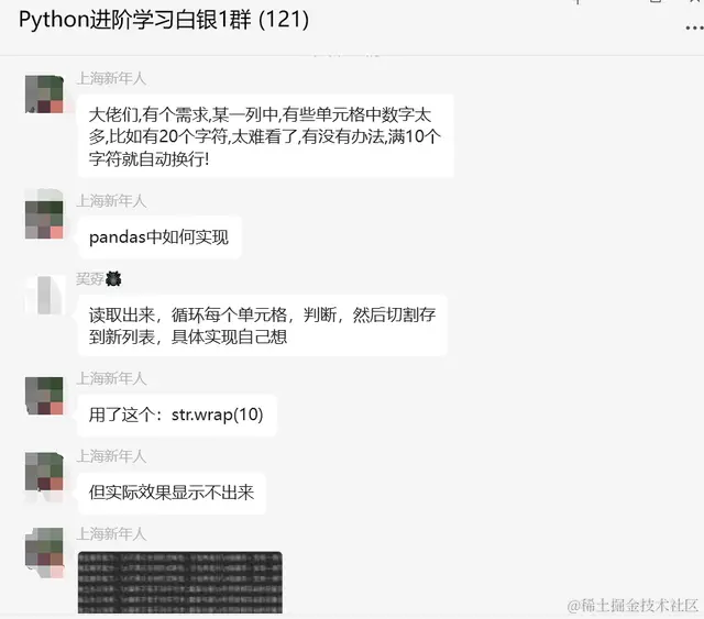 前几天在Python白银交流群【上海新年人】问了一个Pandas处理数据的问题。问题如下:大佬们,有个需求,某一列中,有些单元格中数字太多,比如有20个字符,太难看了,有没有办法,满10个字符就自动换行!