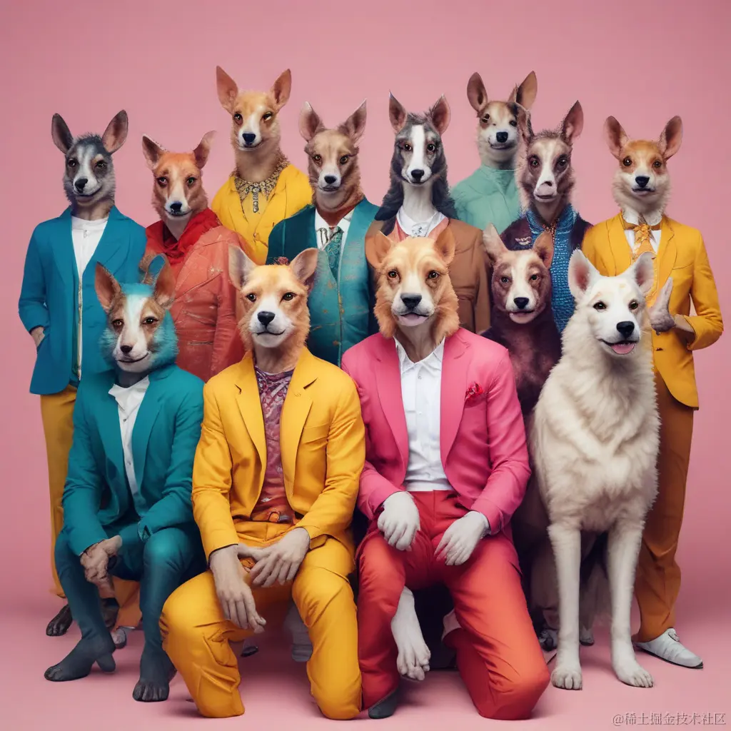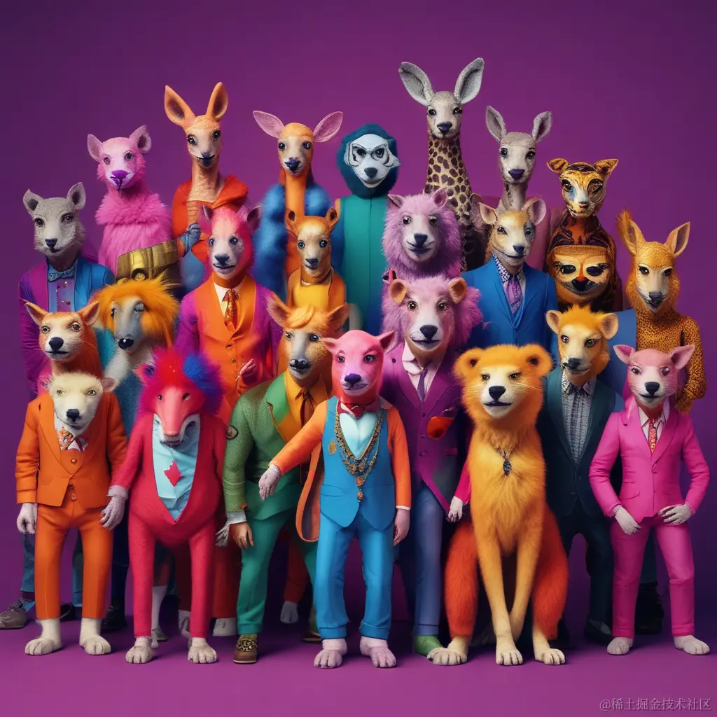 prompt A superstar [Animal&Music] group,anthropomorphic,vibrant colors,group photo,fashionable,cool,studio photography,minimalism