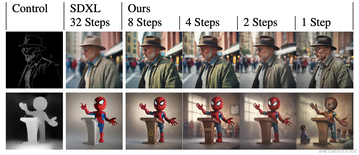 在 canny edge 和 depth ControlNet 场景下,随着步数的下降,质量会有一点点的影响。