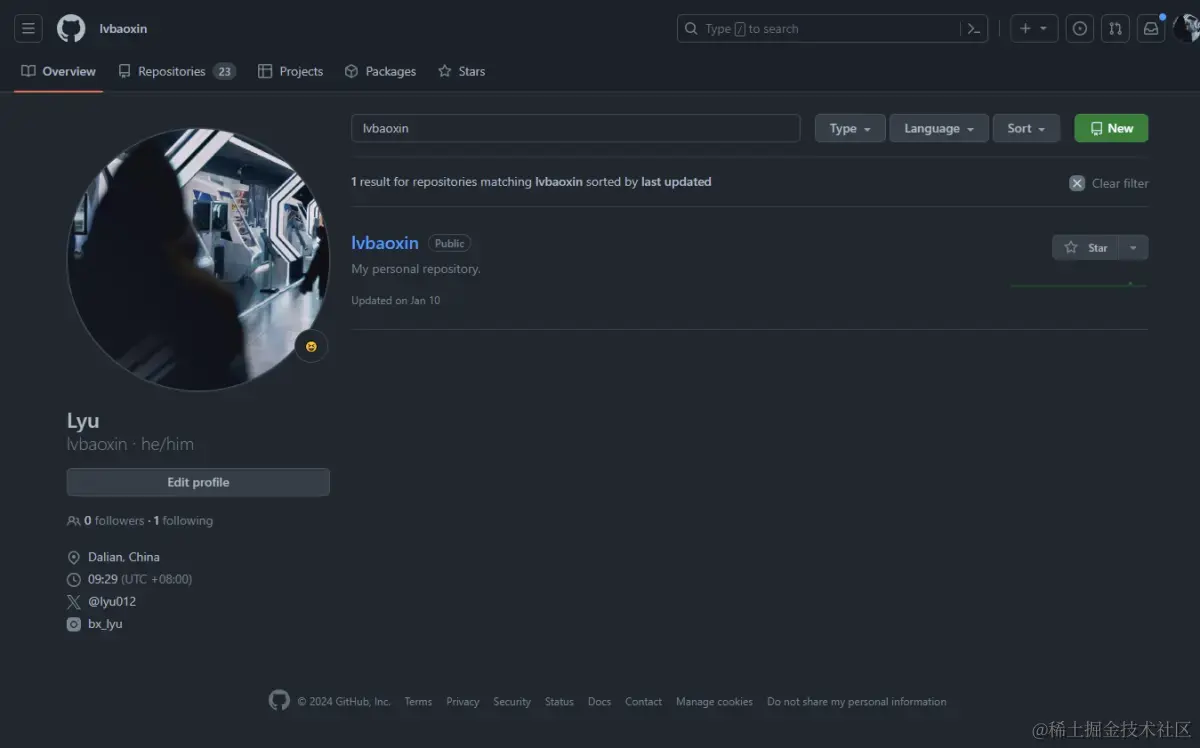 例如,我的 GitHub 用户名是 lvbaoxin。要创建我的个人资料,我需要创建一个名为 lvbaoxin的存储库,然后添加 README.md 文件。