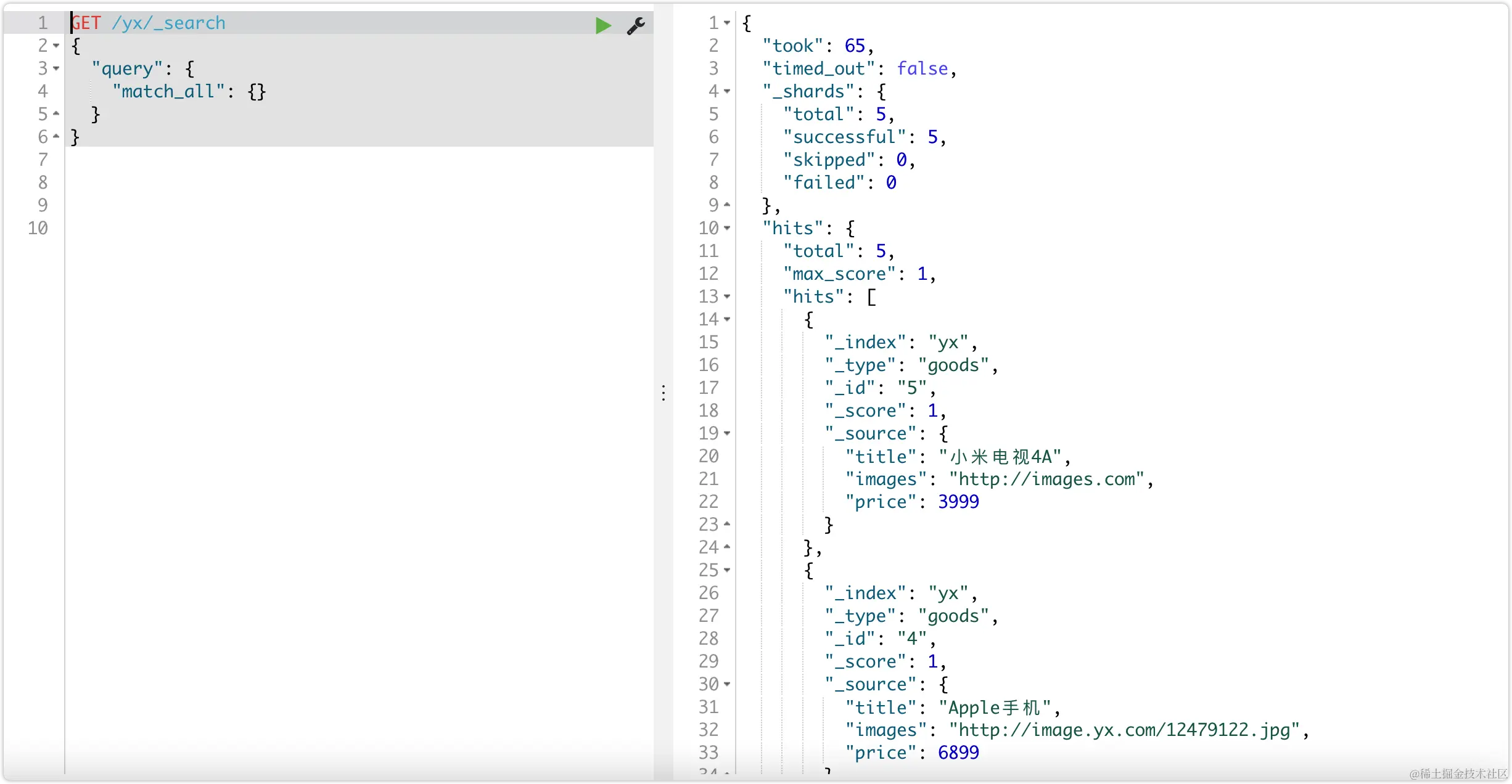 一. 查询所有match_all