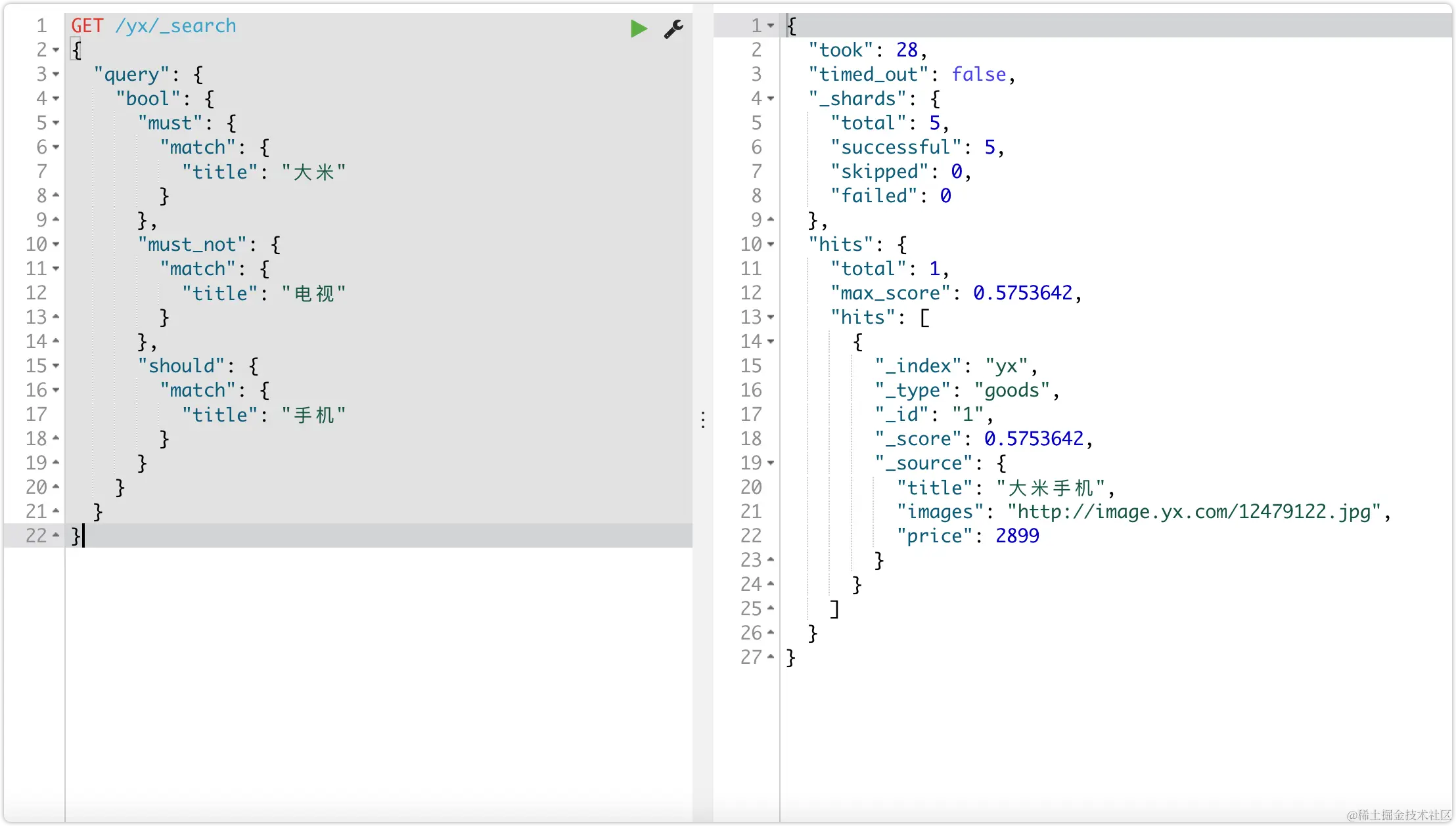 bool把各种其它查询通过must(与)、must_not(非)、should(或)的方式进行组合。