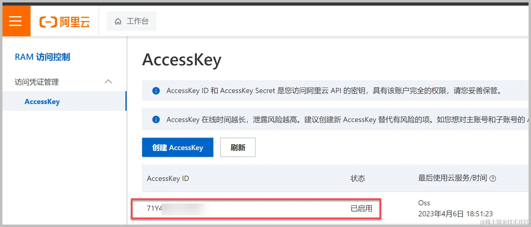 对于阿里云的OSS来说,对应的AccesKey和SecretKey自己可以通过查看账户的信息可以获取到。