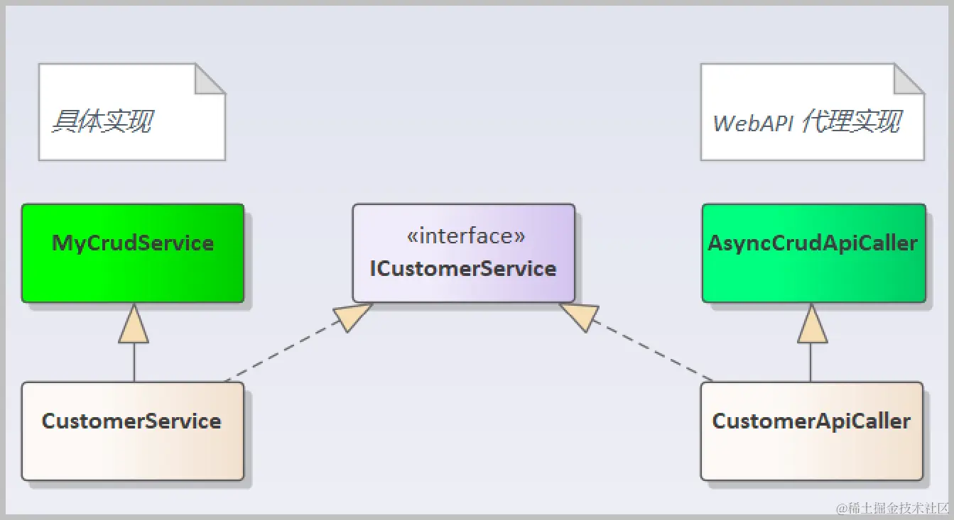 而对应Web API的代理调用类,那么为了极大的重用常规的接口处理,我们需要类似的继承关系。