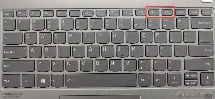 很多笔记本电脑键盘上都有专门的亮度调节快捷键,通常有太阳图标样式的按键。尝试按下相关键,如 【F11】 和 【F12】 键,来调整屏幕亮度。