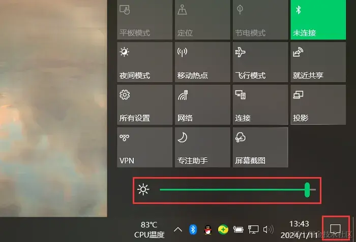 电脑亮度怎么调节正常?通过点击电脑桌面右下方的 【通知图标】 ,进入 【管理通知】 界面,找到亮度设置。