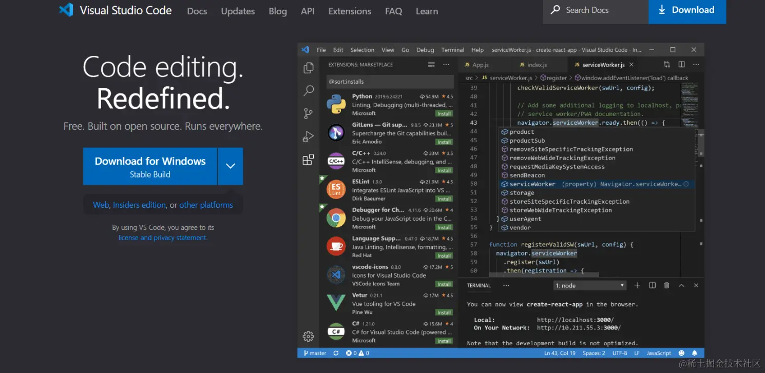 VSCode的设计理念强调用户体验和扩展性,它提供了丰富的插件生态系统,用户可以通过安装扩展来增强编辑器的功能。