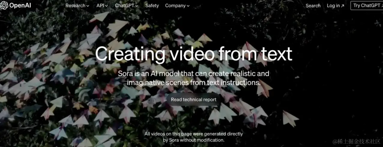 24 年 Open AI 2.16 号发布了新的基于文本生成视频的模型:Sora,再一次让整个国内外的 AI 圈沸腾起来。就连特斯拉的老板马斯克也对此发出感叹:“gg human”,人类面对 AI,愿赌服输。360 老板周宏伟更是认为,一旦让 Sora 将所有的电影和 TikTok 视频全部都看一遍,那么我们离 AGI 真的就不远了,可能不是 10 年 20 年的问题,而是一两年的问题。更有人感叹道:Sora 的影响力简直就是视频领域的 Chat GPT,此时的场景,像极了 23 年 Open AI 发布 Chat GPT 一样。