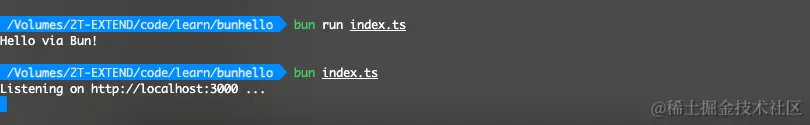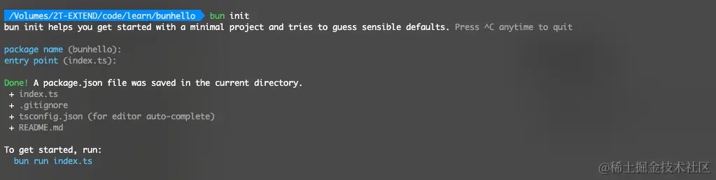 接下来我们可以跑一个helloworld体验一下,可以试用 bun init命令