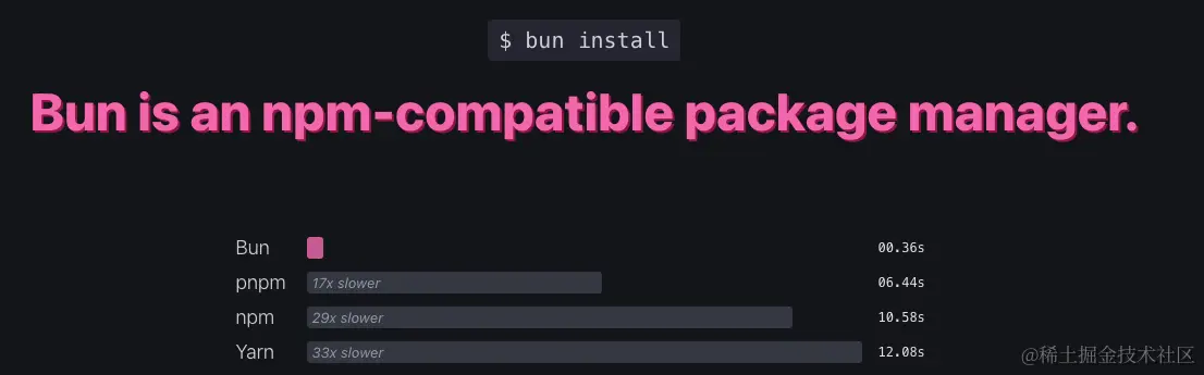 Bun 的目标很简单,就是要消除JavaScript工具链的缓慢和复杂性,但同时保留JavaScript本身的优点。Bun希望让开发者继续使用喜欢的库和框架,并且无需放弃已经熟悉的规范和约定。Bun一直追求极致的性能,在各个方面都要比Nodejs快不少。