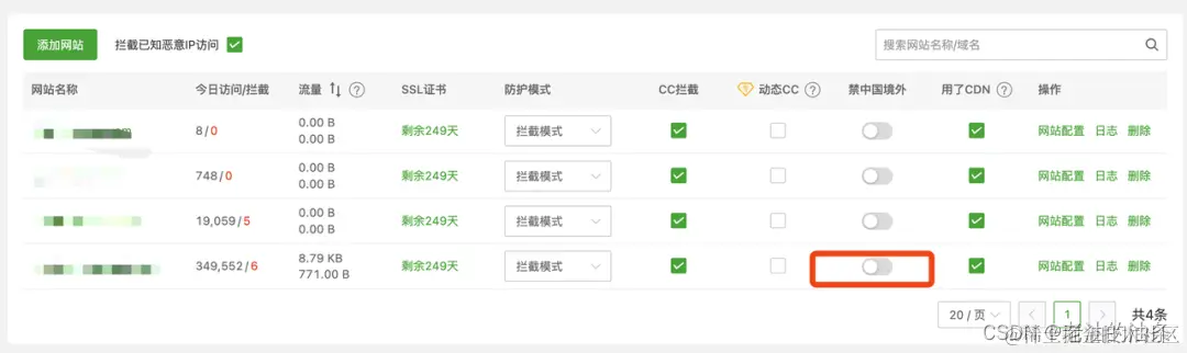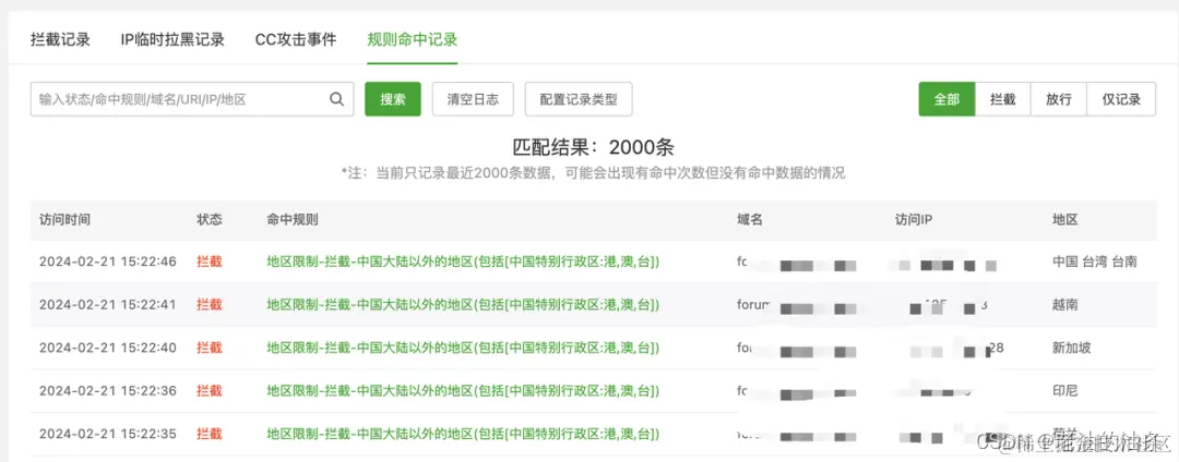 另外一种方式是借用堡塔云 WAF 的【禁中国境外访问】功能