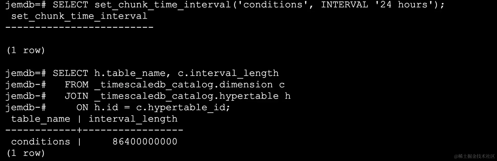 SELECT set_chunk_time_interval('conditions', INTERVAL '24 hours');