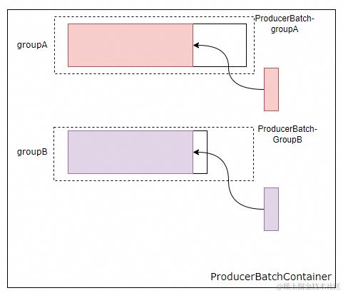 - 攒批容器(ProducerBatchContainer) :攒批容器则是用来管理多个攒批分组的容器,通过这个攒批容器可以知道当前有多少攒批队列在进行攒批。