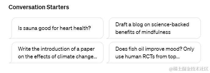 在往下,是这个GPTs的启动对话界面。它包含了上方的四个内容。