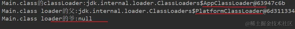 System.out.println("Main.class loader的爷:" + classLoader.getParent().getParent());