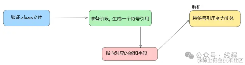 解析阶段主要负责将这些符号引用转换为对应的实体, 如果一个符号引用指向一个未被加载的类或者未被加载的字段或方法, 那么在解析阶段就会负责加载这个东西。