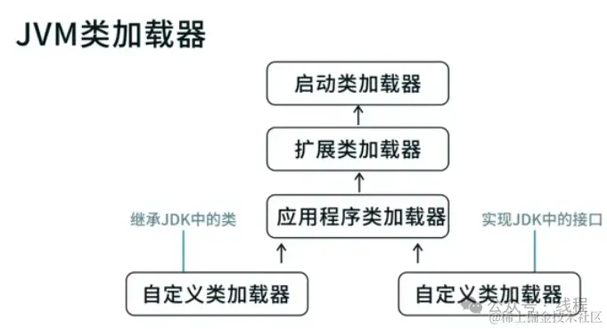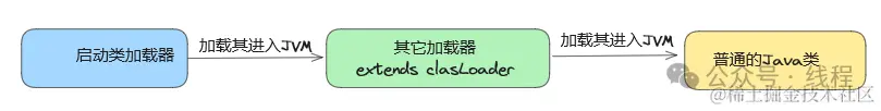 这些加载器本身就是Java写的, 需要先由启动类加载器加载进JVM中, 才能对其它类进行加载, 这种类型的加载器主要有扩展类加载器, 应用类加载器,